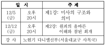 본당소식 Home 본당소식 성당 공지 home 성당 공지 본당 주보 월중 행사 행사 앨범 성당 공지 성당 공지 본당 주보 월중 행사 행사 앨범 성당 공지 게시판 내용 대림 특강 안내 관리자 조회수 : 133 | 2025-11-24
