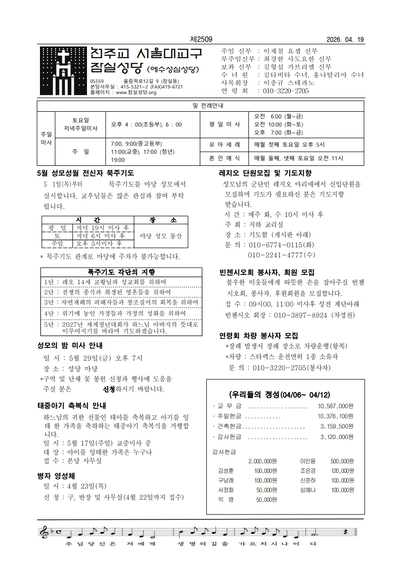 | 이전글 | 부활 제2주일 (2026.04.12) |